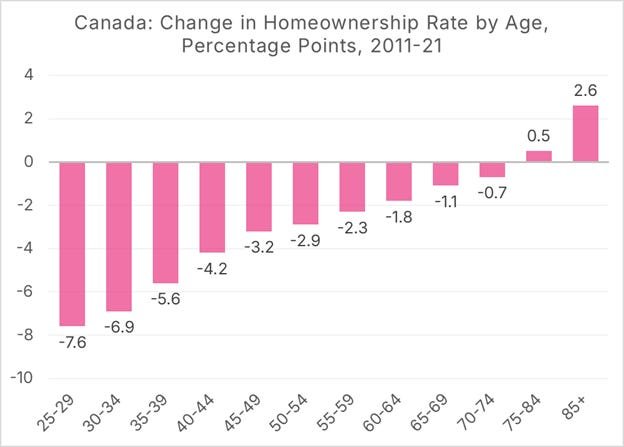 - Declining Homeownership Rates: Homeownership among young Canadians (30-34 years old) dropped from 60% to 52% between 2011 and 2021, with only 51% of those under 30 feeling confident about their ownership aspirations.